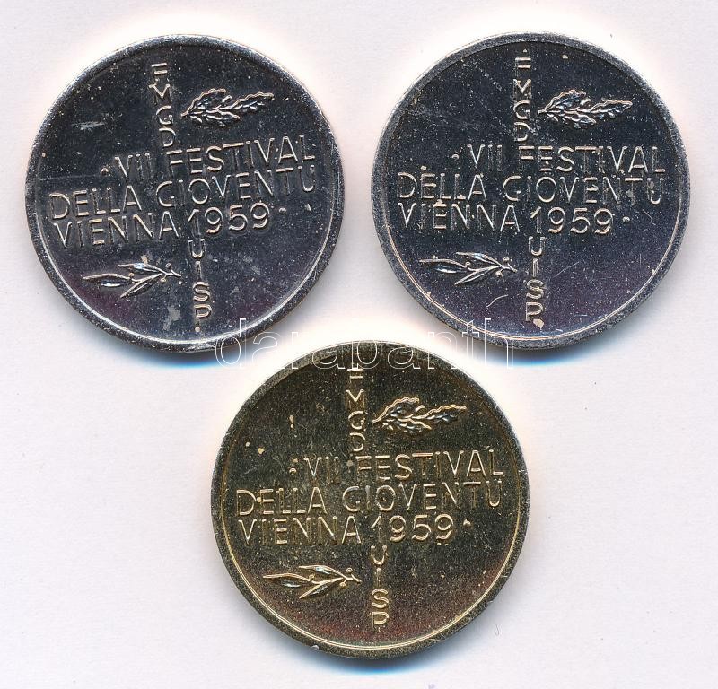 Description: Ausztria 1959. "VII. Ifjúsági Fesztivál, Bécs 1959" Al emlékérem (3xklf) T:1-,2