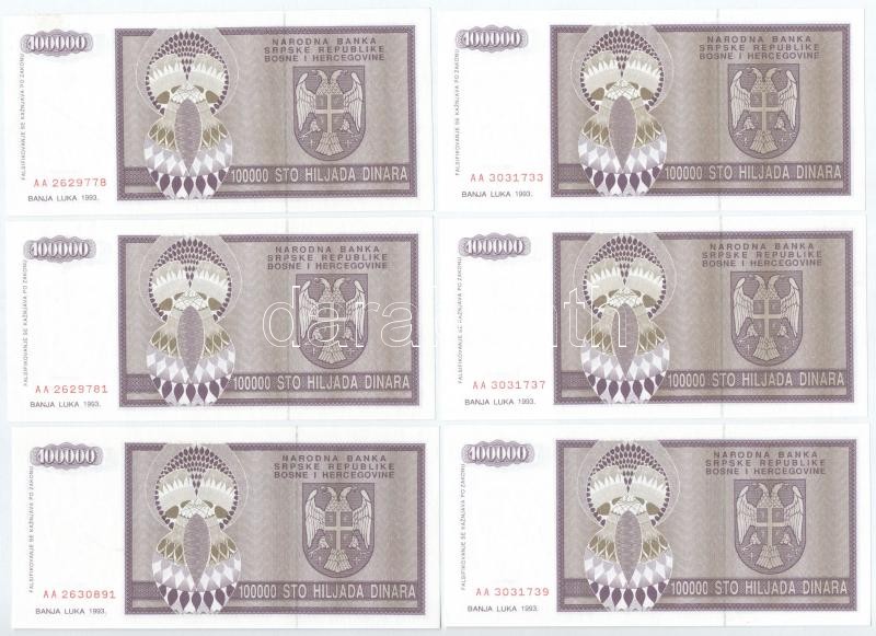 Description: Bosznia-Hercegovina / Szerb Köztársaság / Banja Luka 1993. 100.000D (6x) T:I