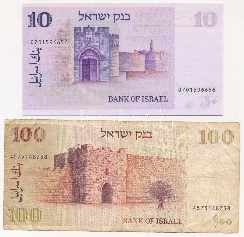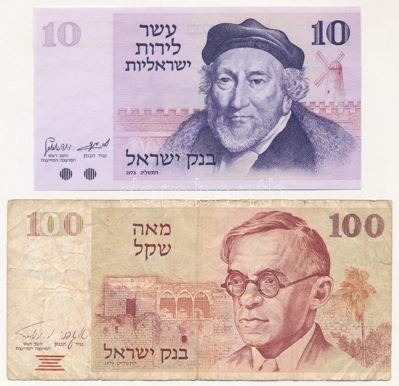 Izrael 1973. 10L + 1979. 100Sh T:I,III Israel 1973. 10 Lirot + 1979. 100 Sheqalim C:UNC,F Krause 39.a