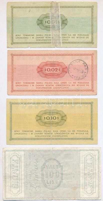 Vegyes: Lengyelország 1969. 0,01c + 0,02c + 0,10c "Bon Towarowy" + Olaszország 1976. 100L csekk T:III