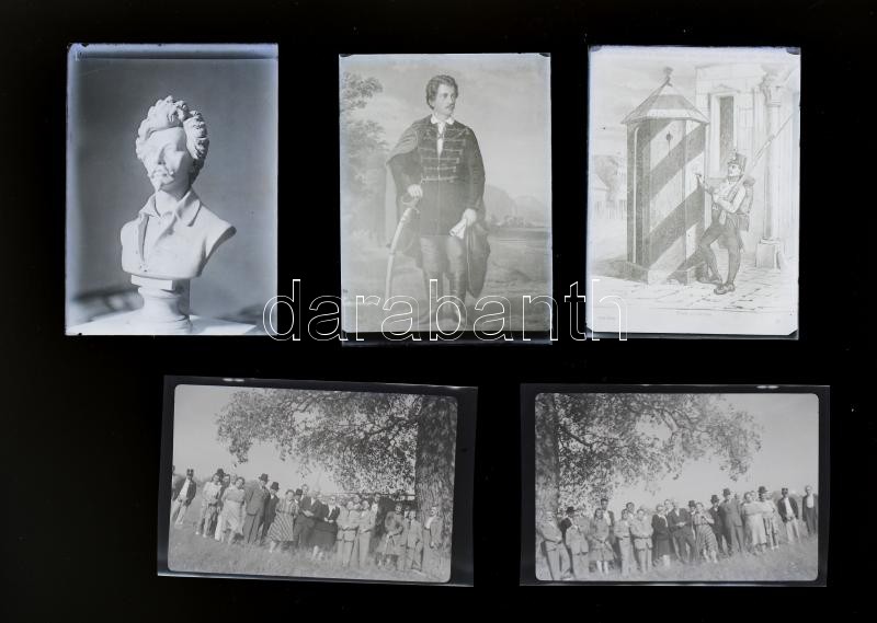 1948 PetÅ‘fi Sándorral kapcsolatos dolgokat ábrázoló 3 doboz / zacskó üvegnegatÃv, kisebb-nagyobb méretben, valamint a dunavecsei 1948-ban avatott centenáriumi PetÅ‘fi-szobor avatásáról készÃtett és egyéb régi negatÃvok 4 fotótasakban