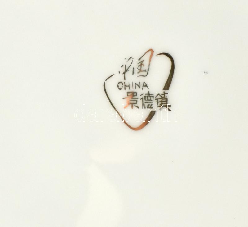 Kínai porcelán tál, matricás, jelzett, kopásnyomokkal, d: 23 cm