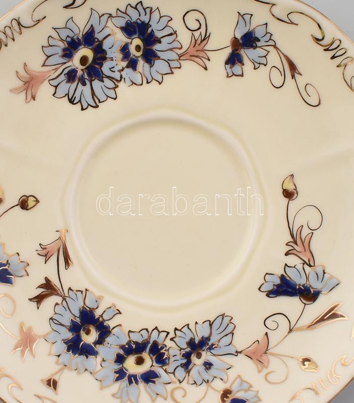 Zsolnay búzavirág mintás teás készlet. Kézzel festett, jelzett, mázrep...