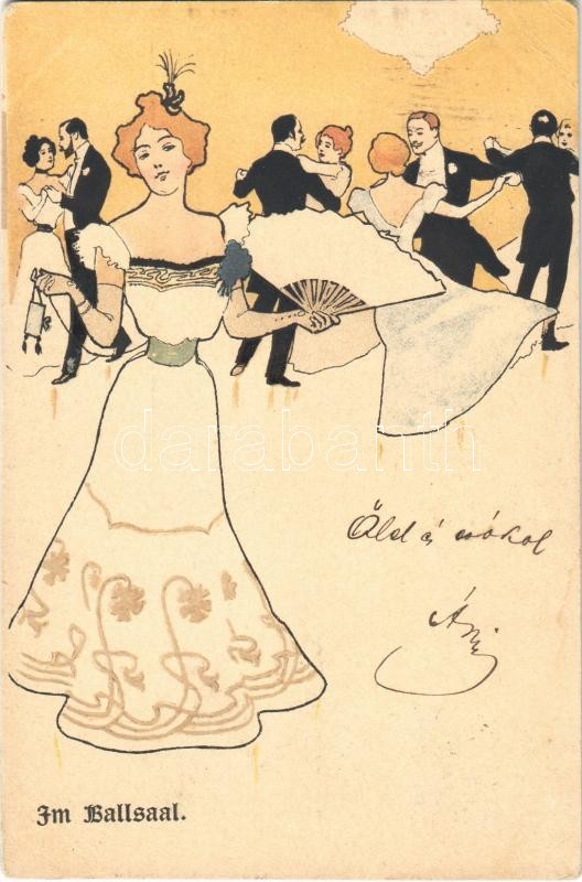 1899 (Vorläufer) Im Ballsaal / Szecessziós tánc, hölgy / Art Nouveau, ...