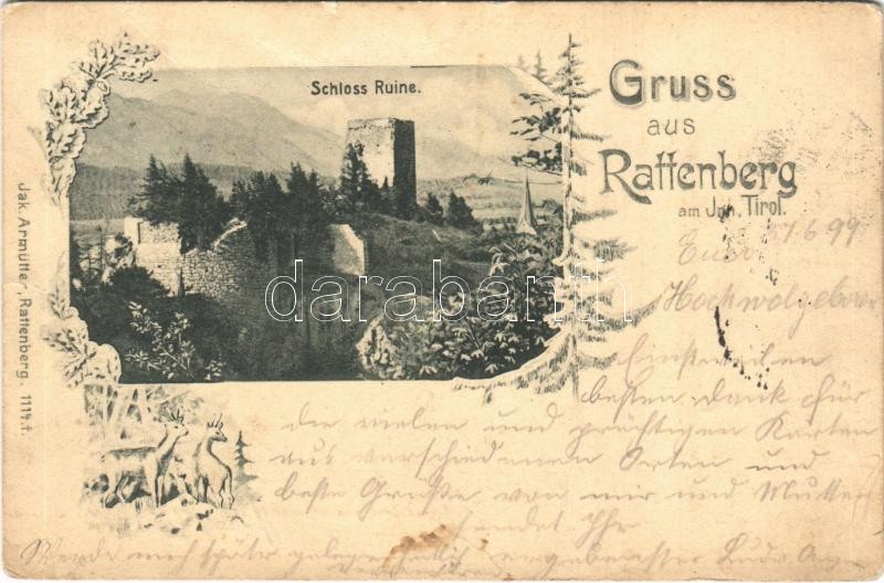 1899 (Vorläufer) Rattenberg (Tirol), Schloss Ruine / castle ruins. Jak. Armütter Art Nouveau, floral (creases)