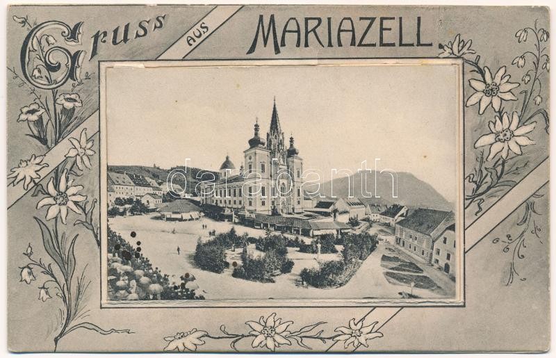 Mariazell. Leporellocard with 10 pictures. Art Nouveau, floral (small ...