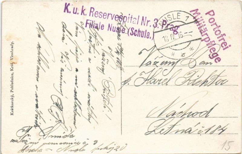 1916 Praha, Prag; Pomník Fr. Palackyho / statue + "K.u.k. Reservespital Nr. 3. Prag Filiale Nusle (Schule)"