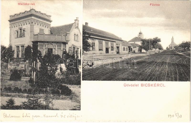 1910 Bicske, Mariska lak, villa, Fő utca. Balázs Sándor kiadása