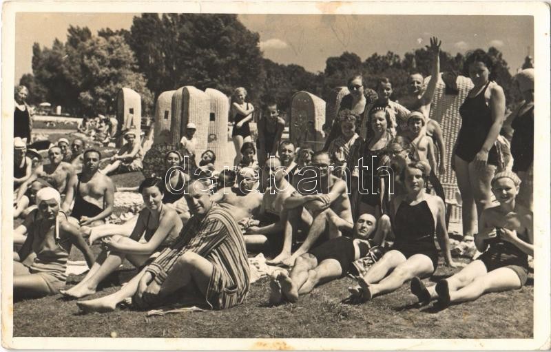1936 Siófok, Balaton-part, fürdőzők csoportképe. Nagy photo (fl)