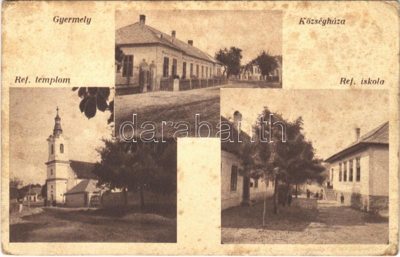1942 Gyermely, Községháza, Református templom és iskola (kopott sarkak...
