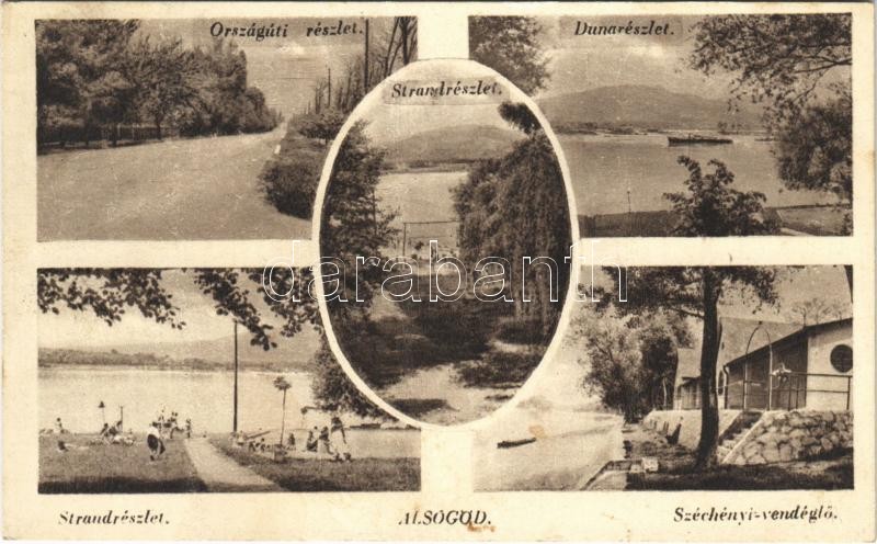 Alsógöd (Göd), Országúti részlet, Duna részlet, Strand, fürdőzők, Széchenyi vendéglő, étterem (fa)
