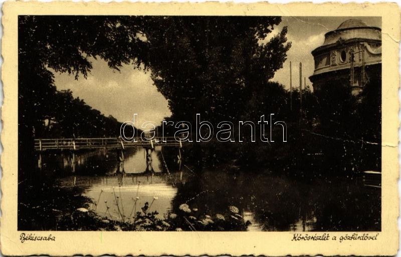 Békéscsaba, Körös a gőzfürdővel, híd (EB)