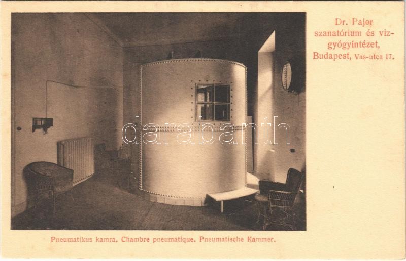 https://www.darabanth.com/en/400-Online-auction/400.0/Postcards/Hungary~1000006/Budapest-VIII-Dr-Pajor-szanatorium-es-vizgyogyintezet-pneumatikus-kamra-belso-Vas-utca-17~II2452719
