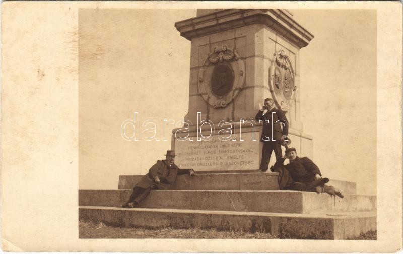 Description: Pusztaszer, Hét vezér emlékoszlop "Magyarország ezeréves fennállásának emlékére Kecskemét város támogatásával közadakozásból emelte a Magyar Országos Diákszövetség". photo (fl)