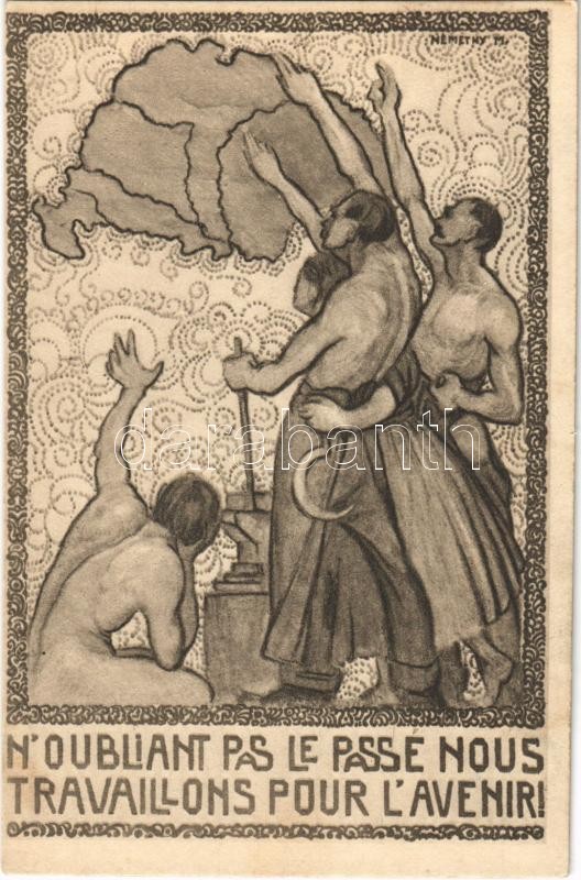 Description: A múltat nem feledve, a jövőért dolgozunk. Némethy Miklós ciklusának I. képe. Kiadja a Tolnay Könyvkiadó, Magyarország Területi Épségének Védelmi Ligája / Hungarian irredenta propaganda, Trianon s: Némethy M. (EK)