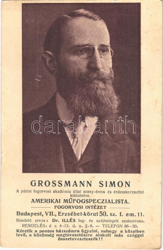 1910 Grossmann Simon amerikai műfogspecialista fogorvosi intézetének r... https://www.darabanth.com/en/400-Online-auction/400.0/Postcards/Judaica~1000078/1910-Grossmann-Simon-amerikai-mufogspecialista-fogorvosi-intezetenek-reklamlapja-A-parisi-fog~II2301450