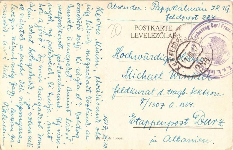 1917 K.u.K. Infanterieregiment Kaiser u. König Karl No. 19. Invalidenf... https://www.darabanth.com/en/400-Online-auction/400.0/Postcards/Militaria~1000080/1917-KuK-Infanterieregiment-Kaiser-u-Konig-Karl-No-19-Invalidenfond-Karoly-csaszar-es-k~II2457288