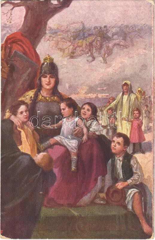 Description: Fölszárítom az özvegyek és árvák könnyeit! A m. kir. honvédelmi minisztérium hadsegélyező hivatala kiadása / WWI Austro-Hungarian K.u.K. military art postcard, charity fund (EK)