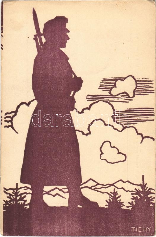 M. kir. 16. honvéd gyalog ezred özvegy- és árva alapja javára. Tábori Postai Levelezőlap / WWI K.u.k. military art postcard s: Tichy
