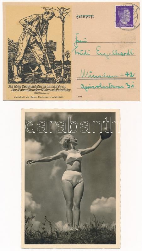 Description: 7 db második világháborús német katonai motívum képeslap ritka darabokkal: üdvözletek és NS (náci) propaganda / 7 WWII German military motive postcards with rare pieces: greetings and NS (Nazi) propaganda