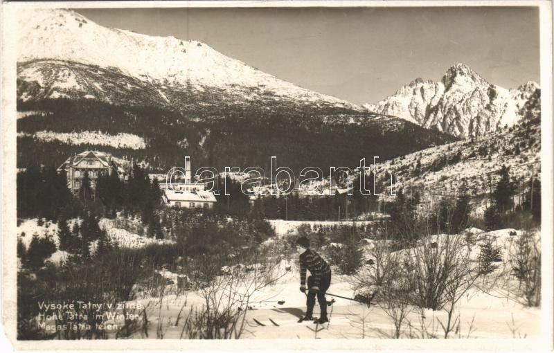 Description: 1930 Ótátrafüred, Tátrafüred, Altschmecks, Stary Smokovec (Tátra, Magas-Tátra, Vysoké Tatry); v zime / im Winter / téli sport, síelő / ski, winter sport (EM)