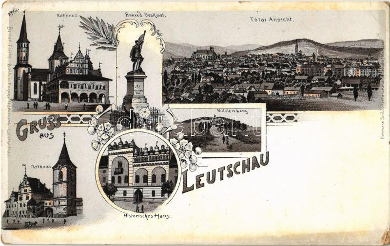 Lőcse, Leutschau, Levoca; Rathaus, Honvéd Denkmal, Marienberg, Total Ansicht, Historisches Haus / városháza, Honvéd emlékmű, látkép, Thurzó féle ház. Braun Fülöp kiadása / town hall, Hungarian military monument, general view, mansion. Hermann Seibt No. 716. Art Nouveau, floral, litho (EK)