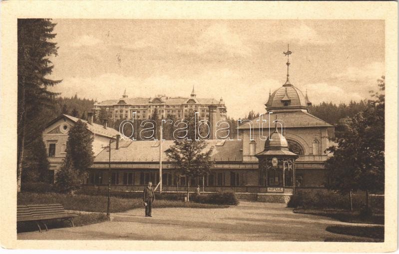 Tátralomnic, Tatranská Lomnica (Tátra, Magas Tátra, Vysoké Tatry); Kúpele, v pozadí Grandhotel "Praha" / fürdő, szálloda / spa, bath, hotel (fl)