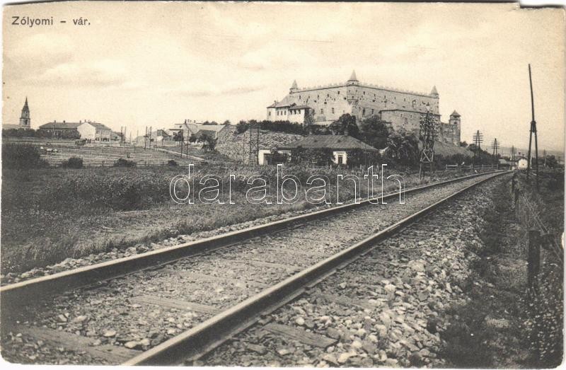 Zólyom, Zvolen; vár, vasútvonal / castle, railway tracks (vágott / cut)