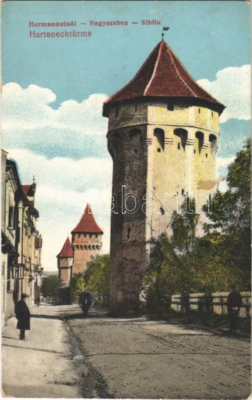 https://www.darabanth.com/en/400-Online-auction/400.0/Postcards/Transylvania~1000007/1913-Nagyszeben-Hermannstadt-Sibiu-Harteneckerturme-torony-utca-tower-street-fa~II2451350