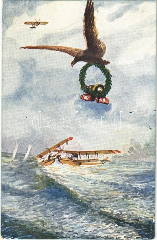 1917 "Dem Freunde Schutz!" (Vom Feinde bedroht, rettet k.u.k. Lschfslt. Konjevic seine Kameraden) K.u.K. Kriegsmarine Seeflugzeug / WWI Austro-Hungarian Navy art postcard, seaplane, naval aircraft. "Unsere K.u.K. Kriegsmarine" Nr. F. 103. s: P. Jaritz (EK)