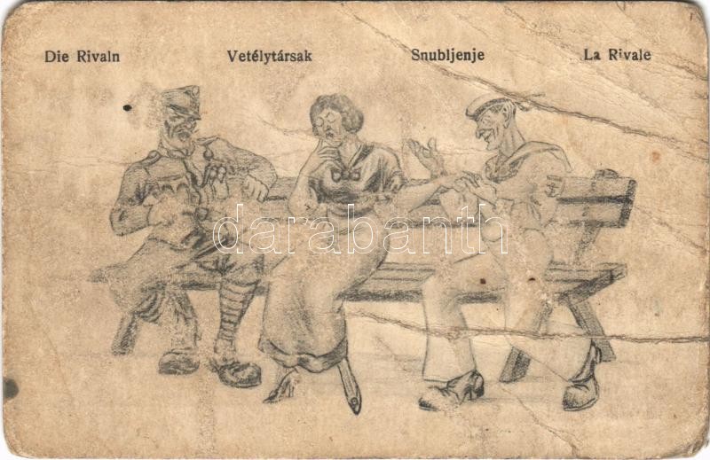 Vetélytársak / Snubljenje / La Rivale / Die Rivaln. K.u.K. Kriegsmarin... https://www.darabanth.com/en/400-Online-auction/400.0/Postcards/Warships~1000071/Vetelytarsak-Snubljenje-La-Rivale-Die-Rivaln-KuK-Kriegsmarine-Matrose-Austro-Hungarian~II2449147