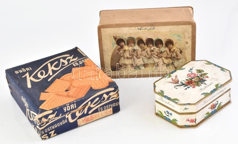 3 db reklámdoboz (Schuler József papír írószer 23x13, Stühmer százszorszép 15x10cm, Győri keksz ostyagyár 16x18cm)