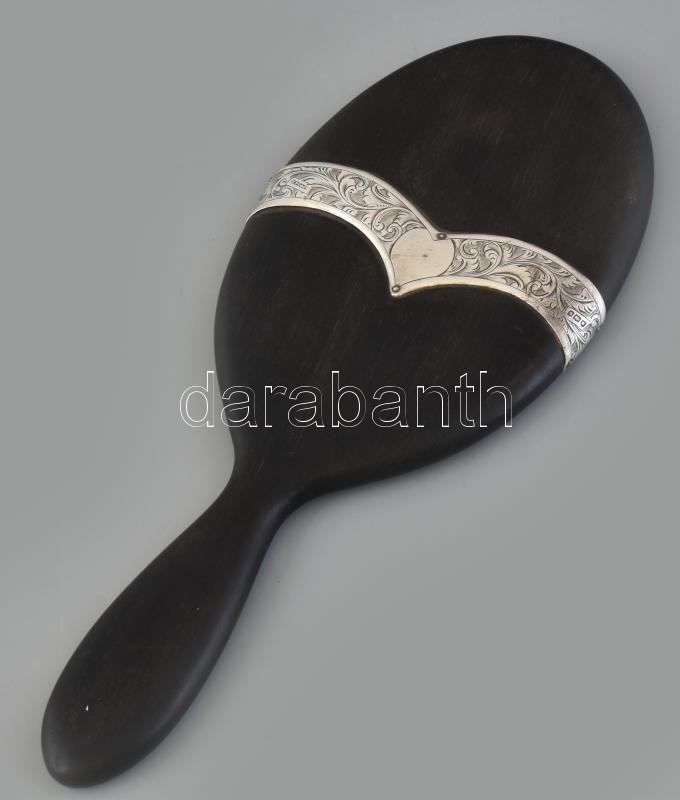 Ébenfa tükör, ezüst(Ag) berakással, jelzett, tükrön karcolásokkal, h: ...
