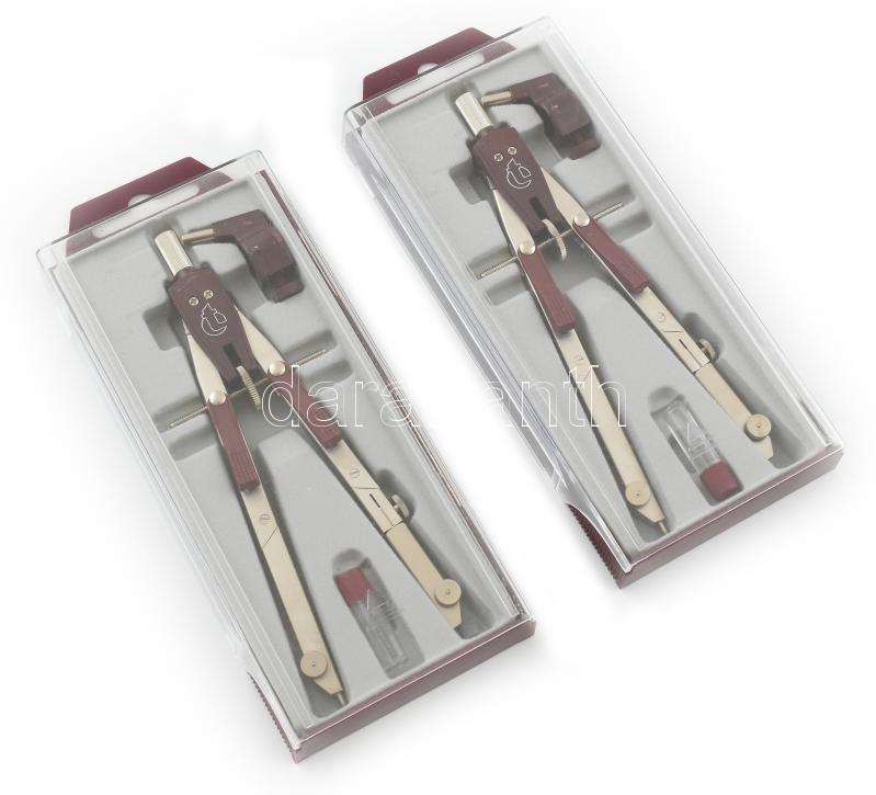 2 db körző, tartozékaival, eredeti dobozában, h: 16,5 cm