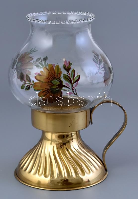 Fém és üveg mécses tartó nagy méretű M: 20 cm