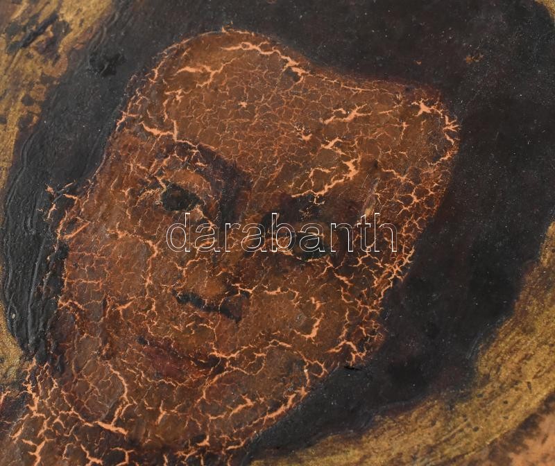 Jézus ikon másolat, fa alapon tempera, 22 x16,5 cm, kopott, sérült.