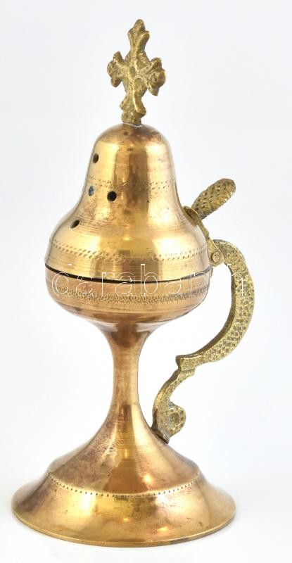Régi. réz sétáló füstölő tartó kereszttel m: 16 cm
