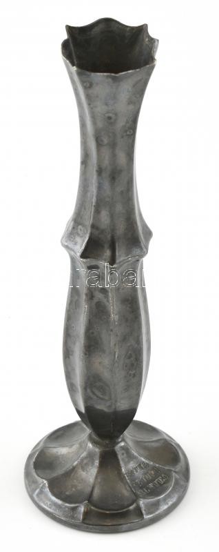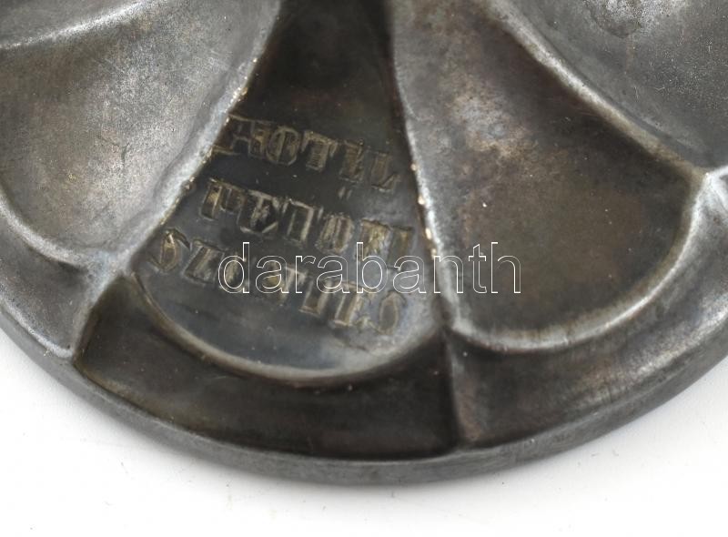 cca 1930-1940 Hotel Petőfi, Szentes feliratos alpakka váza. 21 cm
