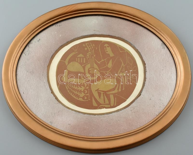 Ovális, üvegezett műanyag képkeret, Würtz Ádám nyomattal. cca. 24x30cm