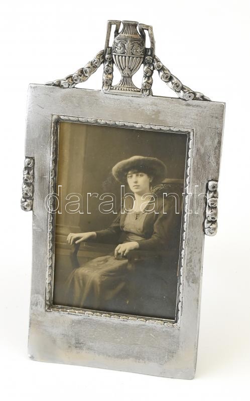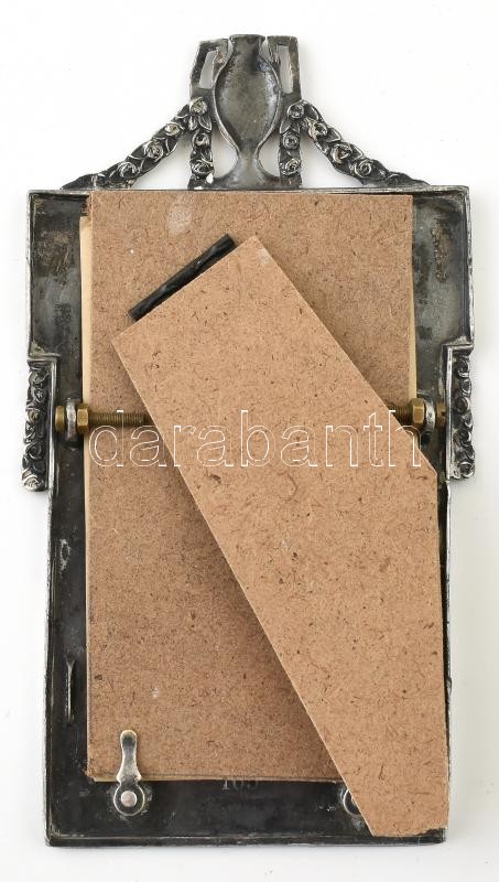 Szecessziós ezüstözött ón képtartó. Kopott, 9x6cm