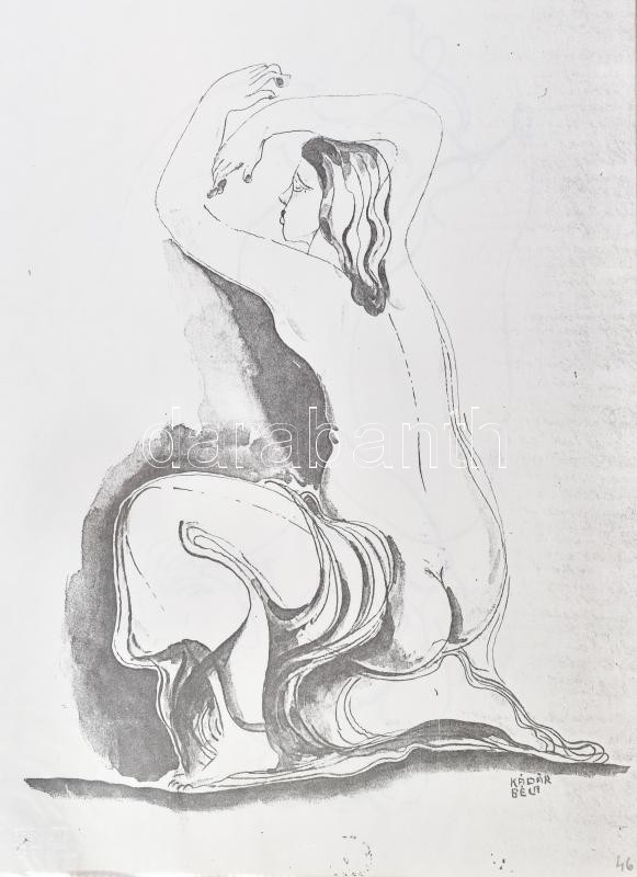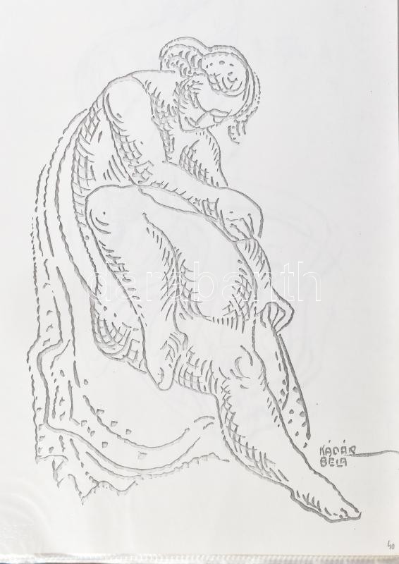 cca 1991-1995 Kádár Béla (1877-1956) festőművész kb. 72 db grafikájáról készült A4 méretű fénymásolat. Kádár Béla unokája, jogutóda, Bodó Tamás által kiállított kézzel írt, autográf aláírásával ellátott igazolással a grafikák elé helyezve külön lapon, mely szerint a "(...) kiadott könyvben szereplő grafikák valamint azon grafikák melyeket most elcseréltem jelenlegi tulajdonosával a Kádár hagyatékból származnak és azok eredetiségét igazolom". Az igazolás nem részletezi, de feltehetően az 1991-ben megjelent Kádár Béla - A papír két oldala c. könyvről van szó. Több lapon Nachlass Kádár Béla hagyatéki bélyegzővel. Mappában, egyenként tasakban lefűzve.