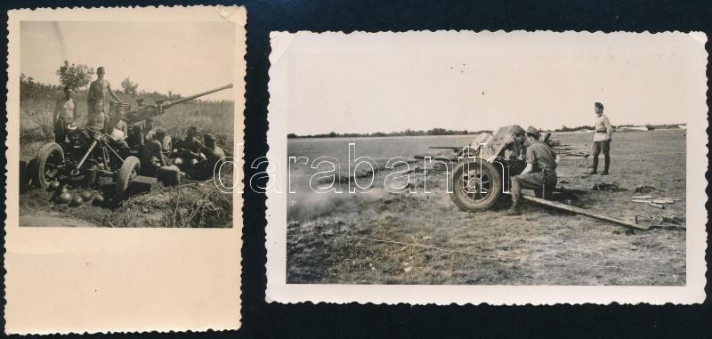 II. világháborús magyar tüzérek ágyukkal 2 db fotó 6x9 cm, 9x12 cm