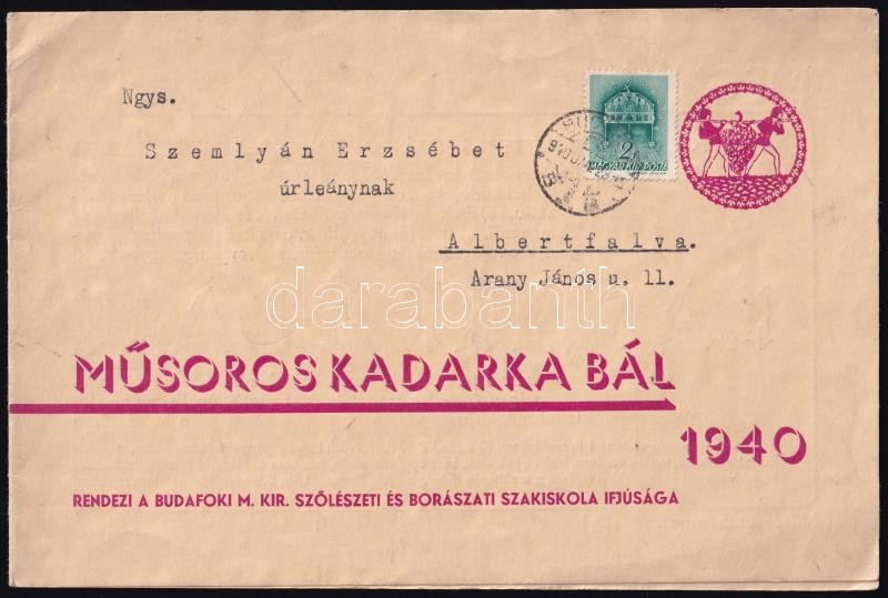 1940 Meghívó a Budafoki M. Kir. Szőlészeti és Borászati Szakiskola Ifjúsága által rendezett műsoros kadarka bálba