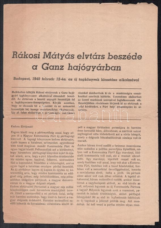 https://www.darabanth.com/en/401-Online-auction/401.0/Art-and-other-collectibles/Printed-Materials~500030/1948-Bp-Rakosi-Matyas-elvtars-beszede-a-Ganz-hajogyarban~II2378033