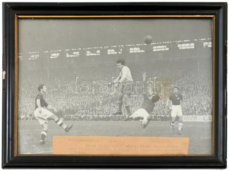 Description: 1949 Budapest - Párizs (2:2) labdarúgómérkőzés meccs képe Nyers, Rudas, Nagymarosi, bekeretezve / 1949 Budapest vs Paris football match image in frame 22x17 cm