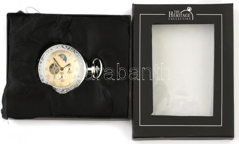 Heritage Collection zsebóra, díszes fémtokkal, apró kopásnyomokkal, működik, eredeti dobozában, d: 4,5 cm