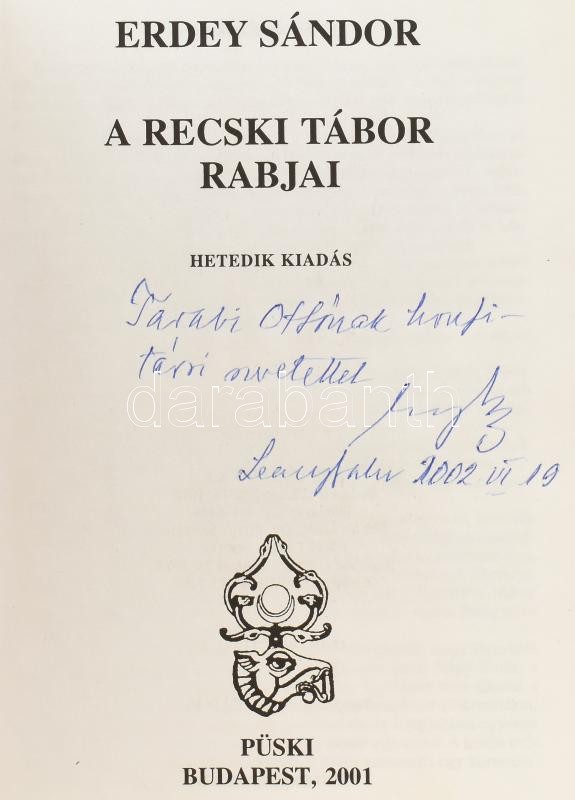 Erdey Sándor: A recski tábor rabjai. A szerző, Erdey Sándor (1920- 201... https://www.darabanth.com/en/401-Online-auction/401.0/Books/Books-History~1000005/Erdey-Sandor-A-recski-tabor-rabjai-A-szerzo-Erdey-Sandor-1920-2010-emigrans-magyar-iro-~II2465715