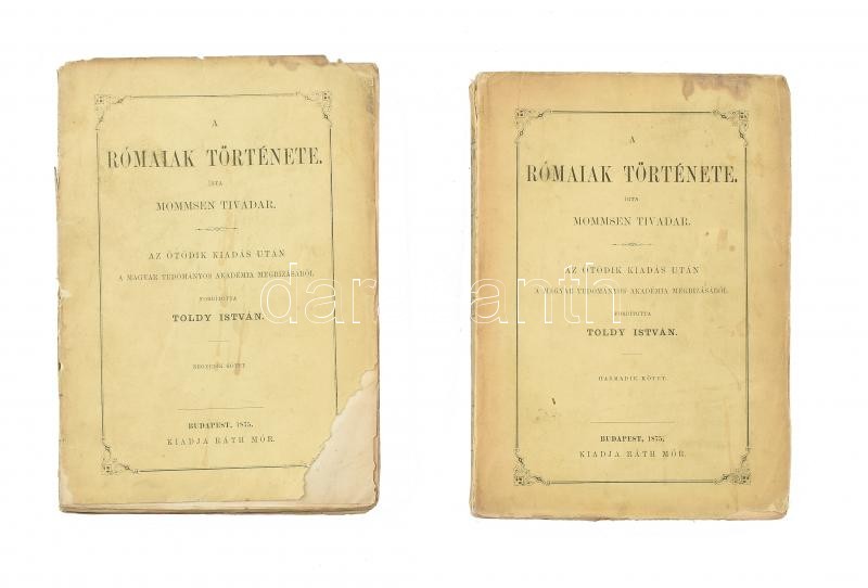 [Mommsen, Theodor] Mommsen Tivadar: A rómaiak története. III. IV:. köt... https://www.darabanth.com/en/401-Online-auction/401.0/Books/Books-History~1000005/Mommsen-Theodor-Mommsen-Tivadar-A-romaiak-tortenete-III-IV-kotet-ford-Toldy-Istvan-B~II2461882