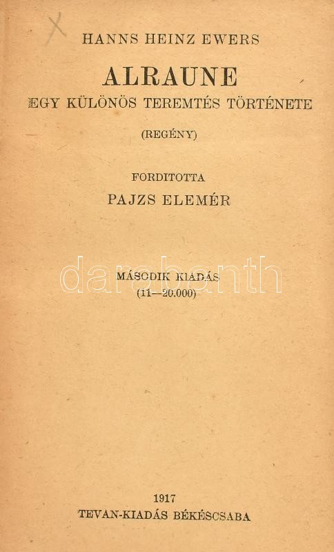 https://www.darabanth.com/en/401-Online-auction/401.0/Books/Books-Other-rarities~1000018/Hanns-Heinz-Ewers-Alraune-egy-kulonos-teremtes-tortenete-Bekescsaba-1917-Tevan-Szarvasb~II2461914