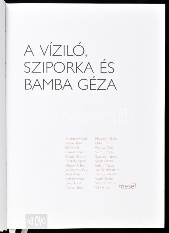 A víziló, Sziporka és Bamba Géza. H.n., 2001, Ab Ovo. Fodor Anikó rajz... https://www.darabanth.com/en/401-Online-auction/401.0/Books/Books-Tales~1000017/A-vizilo-Sziporka-es-Bamba-Geza-Hn-2001-Ab-Ovo-Fodor-Aniko-rajzaival-illusztralva-Kia~II2443191